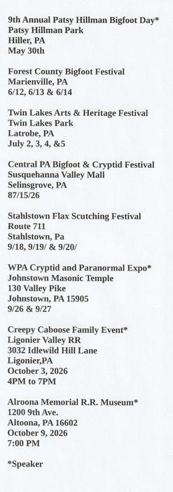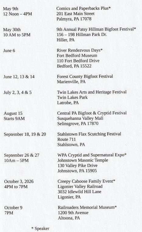 This is a list of the public appearances and events where I will be during 2026. It is as complete as I can make it at this time. Additional dates will be added as they are confirmed and become available.